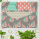 Niedliche, lustige, skurrile Segelboote mit Zickzack Streifen und Polka Punkte auf einem grauen Polka gepunkteten Hintergrund, ideal für alle, die Lieben Segelboote oder das Meer!