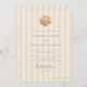 Featuring a beautiful watercolor shell at the top, this unique monogram can be customized with the initials of the bride and groom, adding a touch of intimacy and elegance to your wedding stationery. Whimsical handwritten font elements add a personal and playful touch to your announcement, complementing the minimalist design and inviting your guests with warmth and style. Emphasizing simplicity and elegance, the overall layout is clean and uncluttered, allowing the watercolor shell and your wedding details to shine. This minimalist approach ensures that your invitation is both stylish and timeless. The text is presented in a neutral, mocha brown color, providing a sophisticated contrast against the soft almond colored, striped background. However, you can easily change the font color to match your wedding theme, ensuring a cohesive look throughout your stationery.