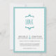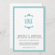 Einfache und Vintage türkisfarbene Hochzeitseinladung mit einer skurrilen "LIEBE"-Grafik und lustigen Button gestreift Rand. Entsprechende Hochzeitssammlung: