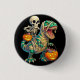 Whimsical Skeleton Riding Mummy T-Rex Halloween Button