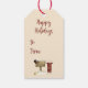 Ein skurriler Schneemann, der Schlittenfahrten auf seinem rustikalen roten Schlitten anbietet, während ein zackiger roter Kardinal von einem Winterbaum aus beobachtet wird. Diese sind besonders süß mit Rot- oder Goldband zur Krawatte auf Ihren Paketen!