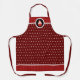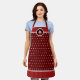 © 2020 Socialite Designs Inc. Whimsical Schürze mit einem roten und weißen Polka-Dot Hintergrund, Kreismuster auf dem oberen und unteren Rand und einem Erdbeerkuchen in einem Kreis.