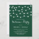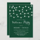 Elegante und skurrile Begrüßung mit Party Einladung aus weißen, hängenden Märchenleuchten auf smaragdgrünem Hintergrund. Personalisieren Sie diese, indem Sie Ihre Daten hinzufügen. Diese smaragdgrüne Begrüßung Party Einladung ist ideal für Hochzeiten, Konferenzen und vieles mehr.