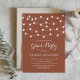 Diese elegante und skurrile Graduiertenparty lädt mit weißen, hängenden Märchenleuchten auf Terrakotta-Hintergrund zum Verweilen ein. Personalisieren Sie diese, indem Sie Ihre Daten hinzufügen. Diese Terracotta Abschluss Einladung ist perfekt für Abschlussfeiern.