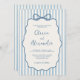 Whimsical Stripe Bow Dusty Blue Ivory Wedding Einladung