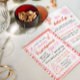 Set a festive tone with this whimsical Friendsmas invitation featuring a watercolor red striped background, playful lettering, and hand-drawn holiday illustrations. A cheerful red and pink palette and modern doodle style make it the perfect choice for a cozy Christmas party with friends and Secret Santa fun.