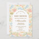 A whimsical watercolor design featuring a playful mix of pastel summer animals surrounded by tropical leaves, seashells, starfish, and soft botanical details. The cheerful palette of peach, mint, coral, and soft blue creates a light storybook atmosphere, while the elegant arch layout keeps the celebration details beautifully framed and easy to read. Perfect for a warm, joyful summer celebration with a charming nursery aesthetic.