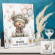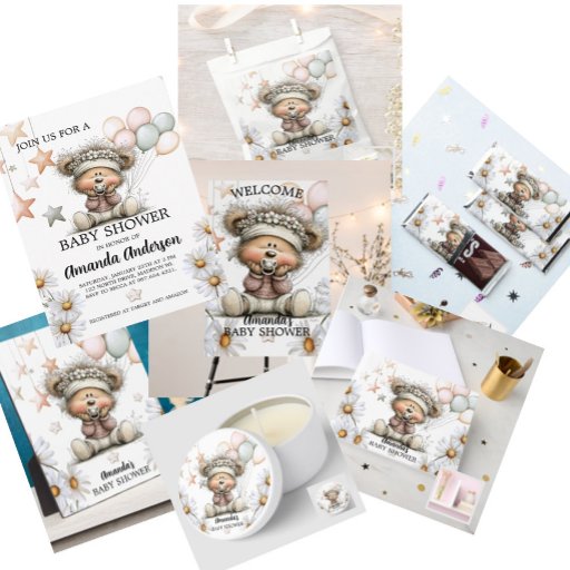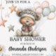 Celebrate the joy of new beginnings with this charming baby shower design featuring a cuddly teddy bear in a floral headband, nestled among cheerful daisies and pastel balloons. Soft colors and starry accents create a dreamy, gender-neutral theme perfect for invitations, party décor, and keepsakes. Customizable for any baby celebration, this sweet illustration brings warmth and whimsy to every detail.