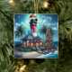 Whimsical Tropical Christmas Lighthouse Aquamarin Keramikornament