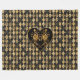 Ein skurriles und romantisches Gothdesign, das eine gewöhnliche Decke in ein Valentine verwandelt, mit einem eleganten Herzstück mit goldenen Rose auf einem dramatischen, schwarz-goldenen Harlequin-Muster-Hintergrund.