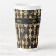 Ein skurriles und romantisches Gothetiklabel, das eine Tasse in einen Valentiner Liebe-Potion verwandelt, mit einem eleganten Herzstück mit goldenen Rose auf einem dramatischen, schwarz-goldenen Harlequin-Muster-Hintergrund und reich vergoldeten Buchstaben.