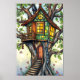 Whimsical verklebtes Glas Treehouse Poster
