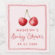 Feiern Sie mit diesem kirschgediegenen Babyduschweinlabel in süßem Stil, das sich perfekt für Gastgeschenke oder Mimosa-Bar eignet. Das Design besteht aus Aquarellkirschen oben, "Baby Shower" in skurriler Rot Schrift und einem handgezeichnet, roten Skallopierrahmen auf weichem, schwarzem Rosa Hintergrund. Personalisieren Sie sich mit dem Namen und dem Duschdatum der Mutter, um ein charmantes und koordiniertes Detail für Ihre Kirsche oder Frucht-themed Feier zu schaffen.