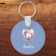 Dieser schlichte Schlüsselanhänger in Blau und Rosa zeigt eine Aquarellillustrierung eines blumengeschmückten Einhorns, umgeben von Herzen und Goldschmetterlingen. Passen Sie es mit dem Namen Ihres kleinen Mädchens an, und verwenden Sie das Editierwerkzeug, um die Größe, die Platzierung und die Farbe des Schriftartes an die Anzüge Ihrer Bedürfnisse anzupassen.