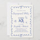 Set the tone for a joyful celebration with this charming retro-inspired light cream engagement party invitation featuring a whimsical french blue wavy frame, hand-drawn bows, and playful blue script lettering. The cheerful wine glasses add a fun, festive touch, creating the perfect blend of romantic and whimsical style. The back of the card features your photo -- ideal for showcasing a favorite engagement picture and adding a personal, heartfelt element your guests will love.
