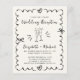 Budget light cream wedding reception invitation featuring a wavy scallop frame adorned with coquette bows, whimsical hand drawn illustrations of hearts and champagne glasses, and "Wedding Reception" and the names of the bride and groom in a fun, playful script. NOTE: This budget-friendly paper is thin, similar in weight to photo paper -- a larger and thicker 5x7 traditional card stock version is also available (message us for the link).