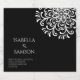 Feiern Sie Ihren besonderen Tag mit einer Touch von Eleganz und Eleganz mit unserem einzigartigen und kunstvoll gestalteten Hochzeitsinklusiv-Set. Mit einem schwarzen Hintergrund und einem faszinierenden, weißen, rotationssymmetrischen Muster von Wimpern und Punkten, die ein blumengeschmücktes Muster bilden, vereint diese Einladung wunderbar das Wesen zeitloser Romantik und modernen Charmes. Dieses einladende Set eignet sich ideal für Paare, die eine Mischung aus zeitgenössischem Design und klassischer Eleganz suchen, die den Ton für eine Hochzeitsfeier, die wegen ihrer Schönheit und Anmut in Erinnerung bleiben wird, Set gibt. Bestellen Sie noch heute Ihre Trauung und machen Sie Ihre Hochzeitsankündigung unvergesslich!