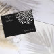 Feiern Sie Ihren besonderen Tag mit einer Touch von Eleganz und Eleganz mit unserem einzigartigen und kunstvoll gestalteten Hochzeitsinklusiv-Set. Mit einem schwarzen Hintergrund und einem faszinierenden, weißen, rotationssymmetrischen Muster von Wimpern und Punkten, die ein blumengeschmücktes Muster bilden, vereint diese Einladung wunderbar das Wesen zeitloser Romantik und modernen Charmes. Dieses einladende Set eignet sich ideal für Paare, die eine Mischung aus zeitgenössischem Design und klassischer Eleganz suchen, die den Ton für eine Hochzeitsfeier, die wegen ihrer Schönheit und Anmut in Erinnerung bleiben wird, Set gibt. Bestellen Sie noch heute Ihre Trauung und machen Sie Ihre Hochzeitsankündigung unvergesslich!
