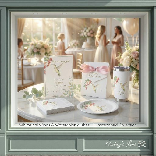 Celebrate the upcoming arrival of your little one with a touch of ethereal charm. This elegant baby shower Backdrop features a stunning, hand-painted watercolor hummingbird hovering amidst soft, pastel floral sprigs.