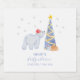 Cute adorable modern elegant winter woodland animal baby shower theme, Holiday baby shower theme, design feature pastel blue watercolor whimsical winter santa polar bear with Christmas tree, snowflake, gift boxes and script calligraphy typography "Baby it's cold outside" you can customize your own unique text and color.