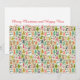 Versenden Sie eine Fülle von Weihnachtsgrüßen mit dieser süßen und farbenfrohen Weihnachtskarte! Sie zeigt ein dichtes, verspieltes nahtloses Muster aus niedlichen Wintertieren (Eisbären, Pinguine, Rentiere) und fröhlichen Schneemännern, eingebettet in einem Wald aus leuchtend bunten Weihnachtsbäumen. Die retro-inspirierte Farbpalette auf einem hellen cremefarbenen Hintergrund verleiht diesem Design ein einzigartiges, gemütliches Gefühl. Perfekt für Familien, Kinder und alle, die eine lustige, vollgemusterte Weihnachtsgrußkarte lieben!