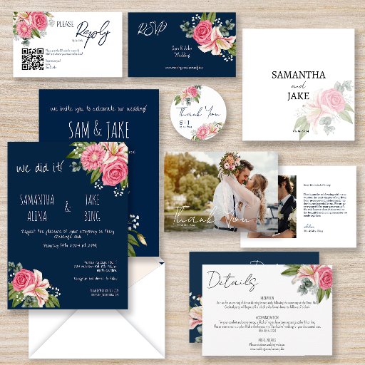 Eine personalisierte whimsical, eigenhändig gezeichnete, knallharte Hochzeitseinladung für alle, die eine schlichte, elegante und blumenreiche Einladung mögen