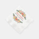 Hochzeitsnapkins aus Brautparty sind im Sommer oder Herbst ein illustriertes, blumengeschmücktes Bordeaux-Design mit farbenfrohen Aquarellfarben-Blume und Grünpflanzen in den sonnengeküssten, goldgelben, rötlich-rosa, korallenroten Orangen, violett lila und in satten Grüntönen gehalten. Das Bio handbemalte Design umrahmt den modernen und stilvollen, individuellen Text in Grautönen, Grün und Orange, der für die Braut personalisiert sein kann.