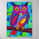 Farbenfrohe Eule und Blätter skurrile künstlerische Eule ai art.