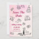Whimsikale Hand gezeichnet Quirky Hochzeit retten das Datum Einladung