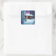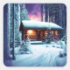Whimsikale rustikale Holzhütte im Wald Quadratischer Aufkleber