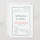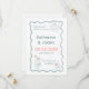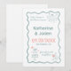 Ein leichtherziges, verspieltes Save-the-Date-Design für eine Hochzeit. Die Grundfarbe ist blau, das Monogramm der Braut und des Bräutigams ist auch auf dem Flaschenetikett enthalten. Bitte personalisieren Sie den gesamten Text.