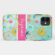 Handgemalt in Aquarell von Designer Audrey Jeanne. Dieses skurrile, niedliche und lustige moderne Blumengestein in hellen Pastellfarben ist mit Ihrem Namen in einem heißen rosa Rahmen personalisiert, der von einem Drachenfliege und Punktwwirl-Blätter betont wird. Unter den blumigen Mustern fliegen funkige Schmetterlinge und mehr Libellen. Perfektes Zubehör für einen Mod, stilvollen, hellen Federschrank. Originale Malerei im Malstil für eine Art, Designer-Schutzhandy oder personalisierte Gehäuse!