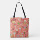 Hübsche Whimsical Floral Design Totbeutel mit Tulpen, Weinbergen und Herzen in verschiedenen Farben auf einem rosa Korallenboden. Es gibt einen Bereich, den Sie einfach mit Ihrem Namen anpassen können!