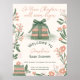 Herzlich willkommen in einer inspirierten Babydusche mit diesem charmanten Willkommensschild. Mit einem skurrilen Bücherstapel, in einen Bogen gewickelt, umgeben von zarten Aquarellfloralen in sanftem Grün und Pfirsich, Set dieses Design den Ton für eine warme und unvergessliche Feier. Eine perfekte Touch für eine buchstäbliche oder literarisch inspirierte Babydusche!