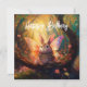 Ein skurriles Hasen mit bunten Feenflügeln liegt auf einem Ast in einem bezaubernden Wald, umgeben von leuchtendem Licht und fallenden Blätter. Die lebendige und magische Atmosphäre lässt ein fantastisches Abenteuer erwarten. Herzlichen Glückwunsch zum Geburtstag in dekorativer Wildblume