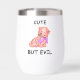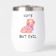 Wine Tumbler mit einer Katze, die man als bezaubernd und als etwas "böse" ansehen kann. Obwohl die Illustration primär süß und skurril ist, könnte sie leicht als "trügerisch unschuldig" gerahmt werden - als eine Art Kunst, die auf der Vorstellung spielt, dass Katzen gleichberechtigte, liebenswerte und diabolische Teile sind.