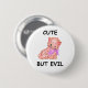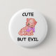 Knopf mit einer Katze, die man als bezaubernd und als etwas "böse" ansehen kann. Obwohl die Illustration primär süß und skurril ist, könnte sie leicht als "trügerisch unschuldig" gerahmt werden - als eine Art Kunst, die auf der Vorstellung spielt, dass Katzen gleichberechtigte, liebenswerte und diabolische Teile sind.