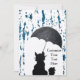Eine skurrile Katze hält den Regen unter einem Regenschirm an.