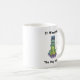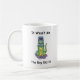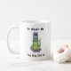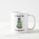 Kaffee-Tasse mit einer Abbildung, die eine gruselig aussehende Katze zeigt, die mit einer Plastiktasse sitzt, die wie ein Helm auf dem Kopf festgeklebt ist. Es ist ein humorvoller, leicht sarkastischer Blick auf Katzen, Ungeziefer und die "natürlich würde mir das passieren" Momente.