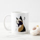 Kaffeemaschine mit grafischem Kunstportrait einer Katze, die Eleganz und Einfachheit gleicht.