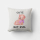 Kopfkissen mit einer Katze werfen, die man als bezaubernd und als etwas "böse" ansehen kann. Obwohl die Illustration primär süß und skurril ist, könnte sie leicht als "trügerisch unschuldig" gerahmt werden - als eine Art Kunst, die auf der Vorstellung spielt, dass Katzen gleichberechtigte, liebenswerte und diabolische Teile sind.