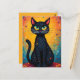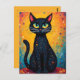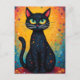 Diese bezaubernde Postkarte besticht durch eine hübsche schwarze Katze mit faszinierenden grünen Augen, die mit Neugier und Verspieltheit zu glänzen scheinen. Die rosa Nase und die zarten Whiskers sorgen für eine reizvolle Touch, während die aufwändigen Fellmuster einen strukturierten und künstlerischen Reiz erzeugen. Die Kulisse strotzt vor Energie und Dynamik und präsentiert eine bezaubernde Mischung aus warmen Gelbtönen und Orangen sowie beruhigender Blues, geschmückt mit skurrilen Blume und Sternen, die das Design mit magischer, traumhafter Qualität verbinden. Diese niedliche Postkarte eignet sich hervorragend, um Katzenliebhabern oder Kunstliebhabern Noten oder Gruß zu schicken.
