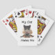 Diese Spielkarten zeigen eine dunkel lustige Abbildung einer wütenden Katze, die auf dem klassischen Stereotyp spielt, dass Katzen distanziert, kalt oder sogar offen feindlich gegenüber ihren Besitzern sind. Es fängt den Spaß von Katzen als winzige Tyrannen ein, die das Haus beherrschen und Menschen nur zu ihren eigenen Bedingungen tolerieren.
