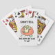 Karten spielen mit einer spielerischen Cartoon-Illustration einer Katze, die sich flink auf einem großen Sitzsessel niederlässt. Es fängt eine lustige Stimmung des "faulen Tages" ein - wie eine Katze, die sich in Snacks und absolut nichts Produktives gönnt. Es verleiht ein humorvolles, relatives Ambiente des Loungings und des Snacks zu Exzess.