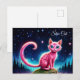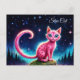 Whimsisch leuchtende Katze, blaue Augen langen Sch Postkarte