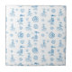 Spielerisches Möwe-Doodle-Muster Keramikfliese mit surfennden Vögeln, Muscheln und Sonnen-Icons in sauberer blauer Linienkunst. Leichtes, lustiges und strandfertiges Ästhetik mit einer sorglosen Küstenatmosphäre. Ideal für Surfer, Strandliebhaber und Sommer-Lifestyle-Fans.
