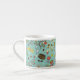 Whimsical Flower Garden, ein wunderschöner, farbenfroher, lustiger, skurriler Stil von Creme, dunkelbraun, Korallen, Blau, Grün Blume und Vögeln auf einem hübschen aquablauen Hintergrund. Zu diesen skurrilen Blumenprodukten zählen Kissen, Kissen, Kissen, Kissen, Serviertablette, Wanduhren, Sets im Bad, Käsesäulen, Käseschäften und -schmuck, Flaschen, Lampen, Lunchpakete, Geschenktaschen und -schachteln, Papiertaschen, Bänder, Servietten und Teller aus Papier usw.