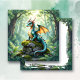 Leere Karte mit dem Thema Drache. Ein skurriler Drache, der in einem detaillierten Aquarellbild dargestellt wird, erhebt sich auf einer moosbedeckten alten Steinruine. Sonnenlicht filtert durch die dichte Baumkronen und beleuchtet Staubmotten, die in der Luft tanzen. Die Waage des Drachen schimmert mit schillernden Tönen, und seine Augen halten eine sanfte, wissende, lustige Fantasiekunst. Niedlich für den Raum eines Jungen.