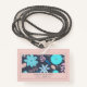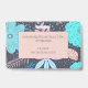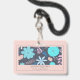 Ein skurriles Abzeichen im Stil der boho volkstümlichen Kunst mit Blumenmuster mit Blätter und gesprenkelter Vegetation in üppig türkis und rosa Farbtönen auf einem rot-rosa Hintergrund. Fügen Sie Ihren Namen und Titel hinzu. Ideal für Wellness-Messen oder Veranstaltungen.