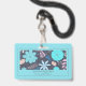 Ein skurriles Abzeichen im Stil der boho volkstümlichen Kunst mit Blumenmuster mit Blätter und gesprenkelter Vegetation in üppig türkisfarbenen und rosa Farbtönen auf türkisfarbenem Hintergrund. Fügen Sie Ihren Namen und Titel hinzu. Ideal für Wellness-Messen oder Veranstaltungen.